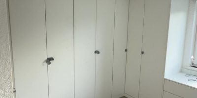 A spare bedroom transformed into a stylish and practical dressing room. Our matt white units and drawer storage completely changed this space and gave our client the storage solution they really needed.