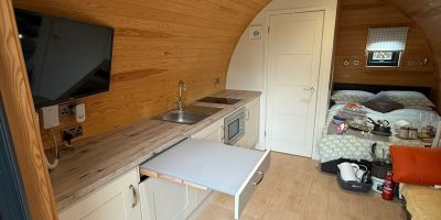 A clever little update with a big impact. We recently revisited a returning customer to improve the layout of their rental garden pod, adding more worktop space and a practical pull out dining table to make the space even more guest friendly.