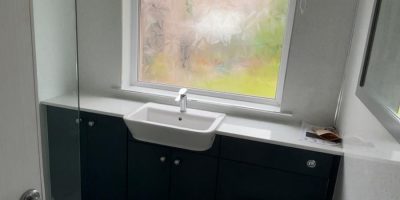 A returning client asked us to refresh their bathroom by modernising the basin and toilet units. Using our Dove Grey gloss furniture, sit on basins and a Silestone quartz worktop, we delivered a stylish update that brought new life and a contemporary feel to the space.