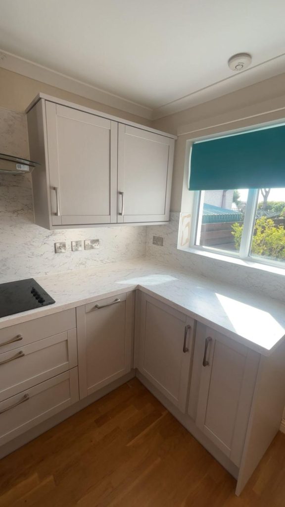 Rather than a complete rip out, we took a smarter approach. We retained all the existing units and added a few extra pieces to maximise storage. Alongside this, we replaced the worktops to create a cleaner, more practical surface area. This refresh gave the kitchen a modern feel while keeping the project straightforward and cost-effective.