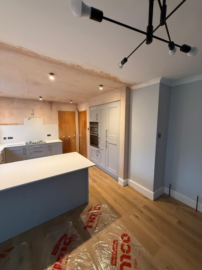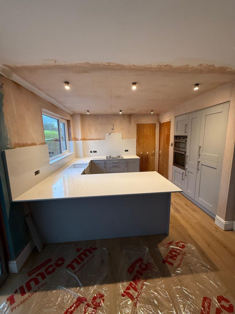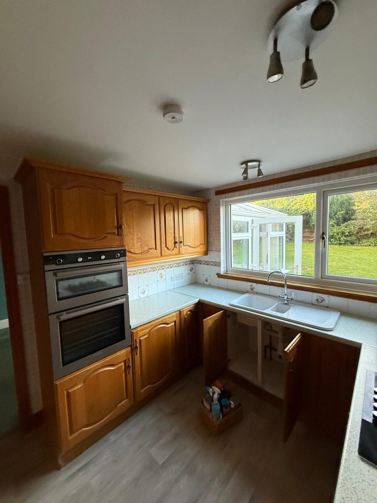 Our clients in Calside were struggling with a kitchen that felt dark and cramped. The main cause was a non structural internal wall that blocked natural light and prevented the space from flowing the way they wanted. They hoped for a brighter and more open layout that would better suit daily life.