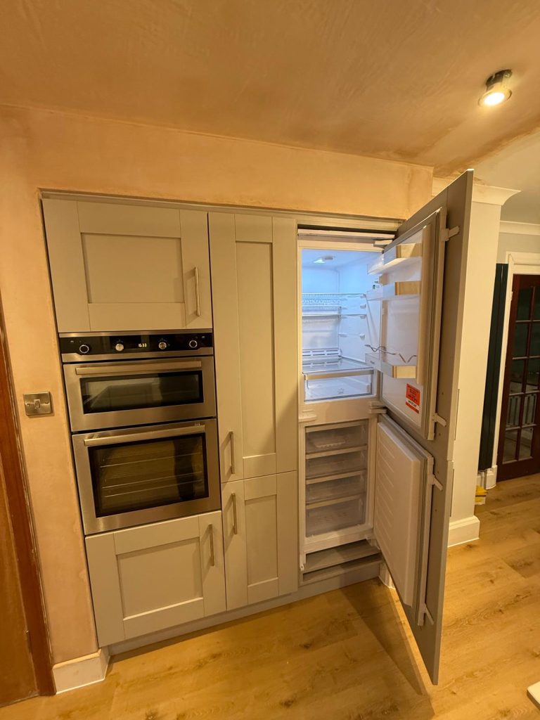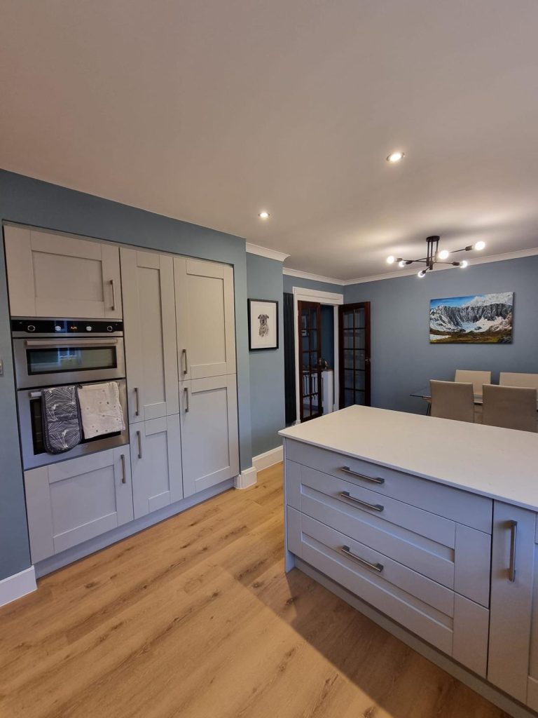 To finish the look, we installed our Grey Grained Shaker cabinetry paired with Miami White Silestone worktops. This combination delivered a timeless style with a clean and refined feel that lifted the entire space.
