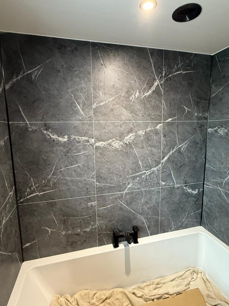 We worked closely with the customer to design a modern and functional space that would feel fresh, bright and easy to use day to day. FIBO wallboarding was chosen to create a clean and contemporary finish that is also durable and low maintenance. We paired this with our stylish bathroom units to provide smart storage options and finished the room with Camaro flooring for a sleek and cohesive look throughout.