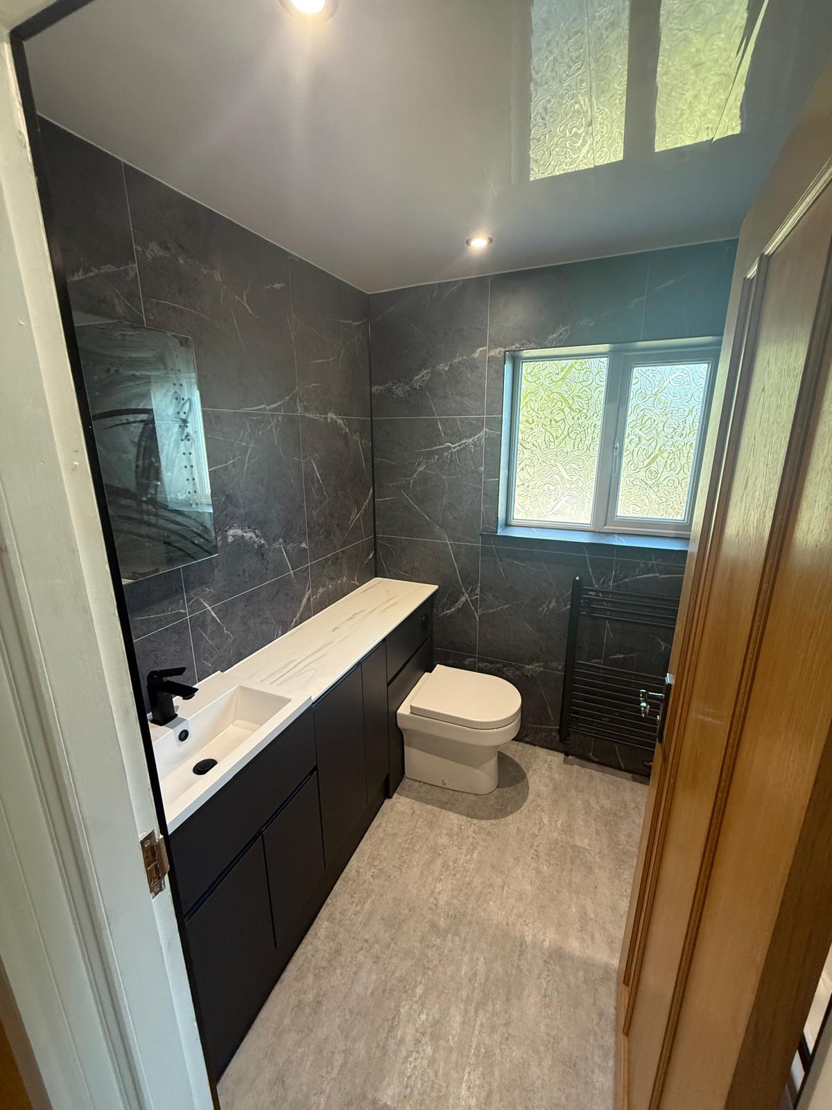 The finished bathroom is a stunning modern space that feels significantly more open and organised. The combination of materials has created a crisp and polished appearance while also improving practicality. Our customer was delighted with the transformation and the bathroom now feels like a completely new room that will stand the test of time.