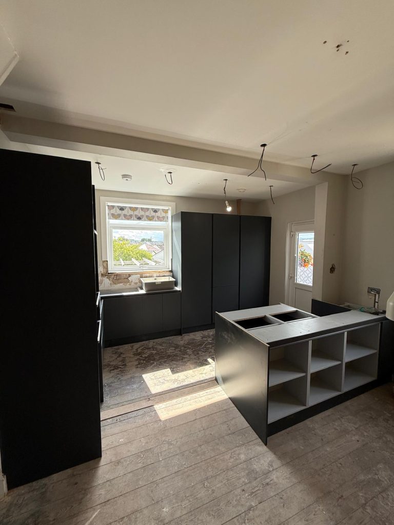 The finished kitchen now feels open, comfortable and highly efficient. Storage has increased dramatically thanks to the space tower and the addition of a peninsula has created a natural gathering point as well as a practical food preparation area. The clients now have a kitchen that supports their daily routine and offers a stylish centrepiece for their home.