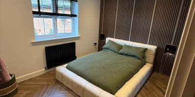 Two standard bedrooms in Summerpark were given a complete makeover with modern finishes, including Naturewall panelling, herringbone flooring, black fixtures, mirrored wardrobes and LED lighting. The result is a stylish and contemporary upgrade that delighted our returning clients.