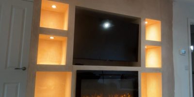 A stunning media wall in Summerpark that transformed an unused space into a stylish and practical focal point complete with storage and a cosy fire.
