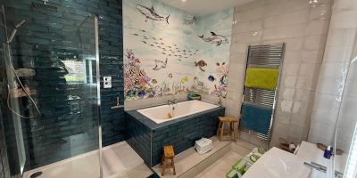 This bathroom renovation in Ruthwell has transformed a dated en suite into a modern, fun and functional space for the grandkids’ nursery. From a sunk-in bath with steps to a stylish LED mirror, every detail has been carefully designed to bring both practicality and personality.