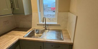 A brilliant example of how you can completely modernise a kitchen without replacing everything. This Locharbriggs re-fit kept the existing cupboards, while updated wall finishes, new flooring and a contrasting splashback transformed the whole space.