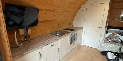 A clever little update with a big impact. We recently revisited a returning customer to improve the layout of their rental garden pod, adding more worktop space and a practical pull out dining table to make the space even more guest friendly.
